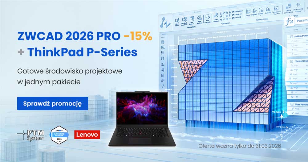 W PTM System dostępna jest nowa promocja na ZWCAD 2026 PRO w zestawie z mobilną stacją roboczą Lenovo ThinkPad. To gotowe środowisko pracy dla projektantów i inżynierów, którzy oczekują wydajności, stabilności oraz pełnej kontroli nad kosztami oprogramowania.